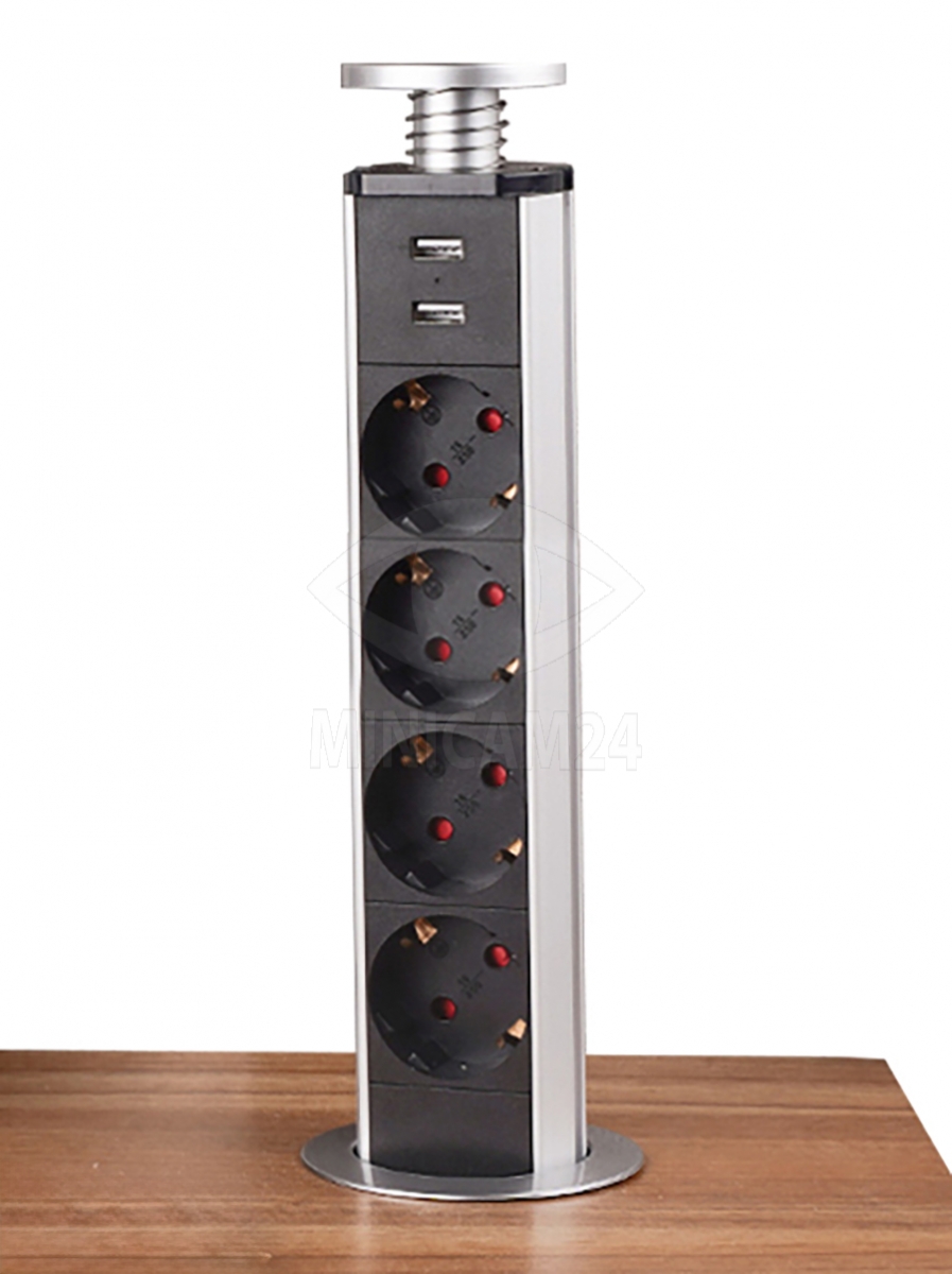 Встраиваемая выдвижная розетка CorePort (4 розетки, 2 USB-A, 1.8м кабель)